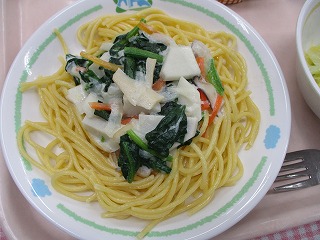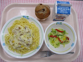 | 1月20日 (木) 「目と骨にいい?!おいしい給食メニュー」 カルボナーラ風スパゲティ フレンチサラダ ブルーベリーケーキ ![]() ![]() |