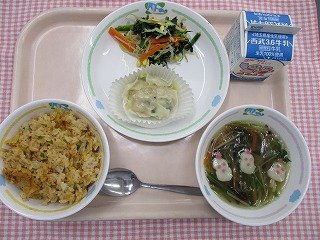 1月21日(金) キムチチャーハン じゃんぼしゅうまい じゃこいり中華風和え物 春雨スープ ![]() ![]() |