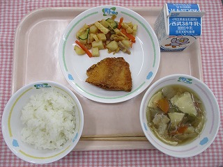 1月13日(木) ごはん アジフライ キャベツのポン酢がけ 里芋と油揚げの味噌汁 ![]() ![]() |