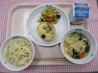 | 2月2日 (水) かきたまうどん キャベツとじゃこのおひたし おにまん ![]() ![]() |