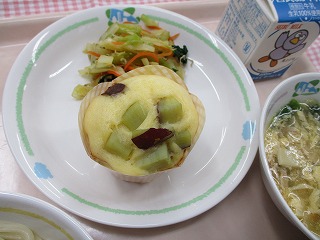 | 3月10日 (木) さといものクリームスパゲティ 夏みかんサラダ チョコチップケーキ ![]() ![]() |