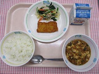 | 2月10日 (木) ごはん いかの竜田揚げ 塩味ナムル マーボー豆腐 ![]() ![]() |