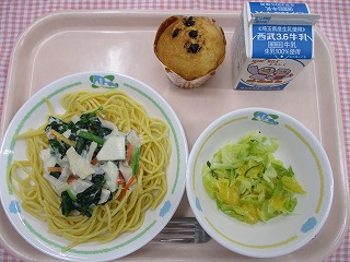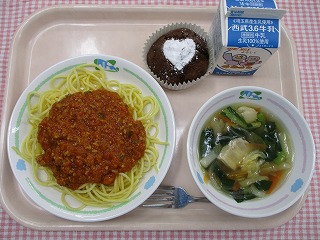 2月14日(月) ミートスパゲティ 冬野菜のスープ ココアカップケーキ ![]() ![]() |