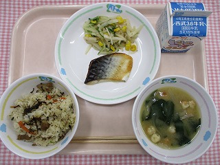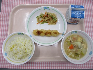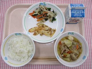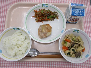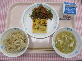 | 3月15日 (火) さといもごはん ちぐさやき 五目きんぴら キャベツと油揚げの味噌汁 ![]() ![]() |