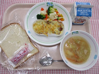 1月18日(火) 「心も体も温まる洋食風給食メニュー」 クロワッサン マカロニグラタン キャベツとパインのサラダ コーンとたまごのスープ ![]() ![]() |
