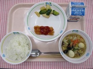 | 3月7日 (月) ごはん いかのチリソースがけ 大根ときゅうりの中華風 八宝菜 ![]() ![]() |