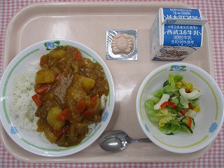 3月14日 (月) チキンカレーライス いかとコーンのサラダ 型抜きレアチーズ ![]() ![]() |