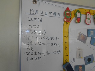 12月23日(金) ほしがた☆パン ローストチキン つぼみサラダ パスタスープ おたのしみデザート ![]() ![]() |