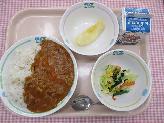 | 12月21日 (水) ハヤシライス フレンチサラダ りんご ![]() ![]() |